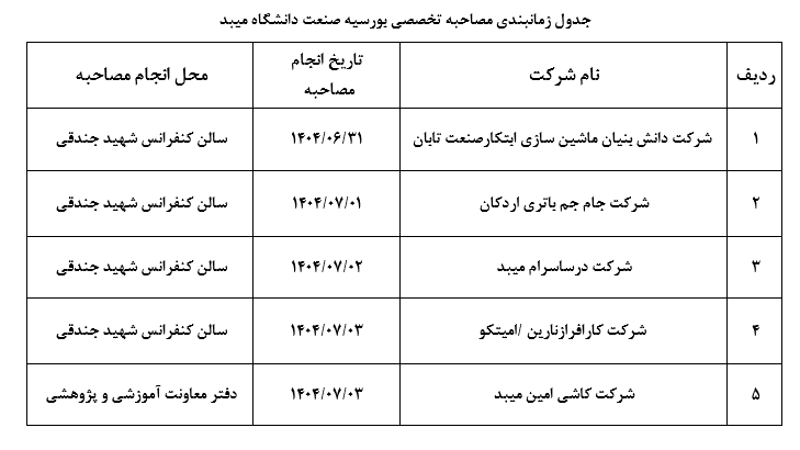 اعلام زمانبندی مصاحبه بورسیه صنعت دانشگاه میبد